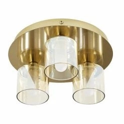 Revive Lighting Revive Satin Brass 3-Light Bathroom Ceiling Light With Glass Cylinder Shades