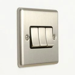 Revive Lighting Revive 3 Gang 2 Way Light Switch – Satin Steel