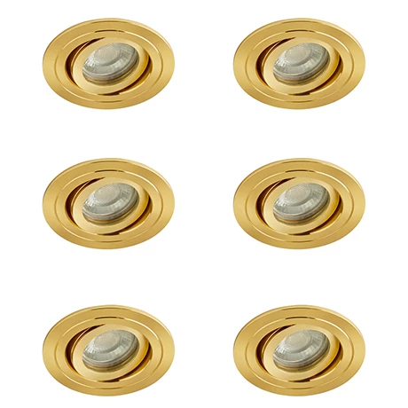 Pack of 6 Revive IP65 Satin Brass Round Tiltable Bathroom Downlights