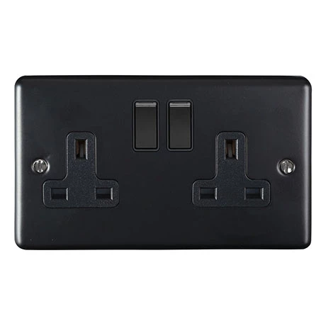 The Revive 2 Gang Switched Socket features rounded edges for a contemporary look. Made from high quality materials, this accessory is styled in a modern design and has a Matt Black finish.