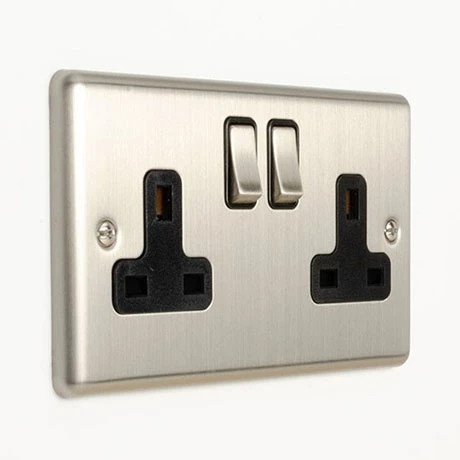 The Revive 2 Gang Switched Socket features rounded edges for a contemporary look. Made from high quality materials, this accessory is styled in a modern design and has a Satin Steel finish.
