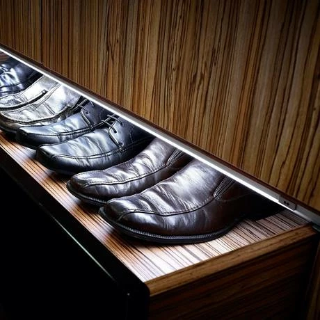 A functional light with infra-red sensor ideal for kitchen drawers and wardrobes. The light is activated when the drawer is opened and switches itself off when the drawer is closed. Available in an aluminium finish.