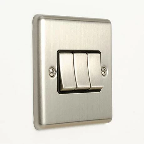 Revive 3 Gang 2 Way Light Switch – Satin Steel