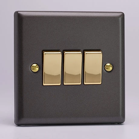 Revive 3 Gang 2 Way Switch – Slate Grey/Brass – RV3SB
