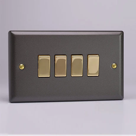 Revive 4 Gang 2 Way Switch – Slate Grey/Brass