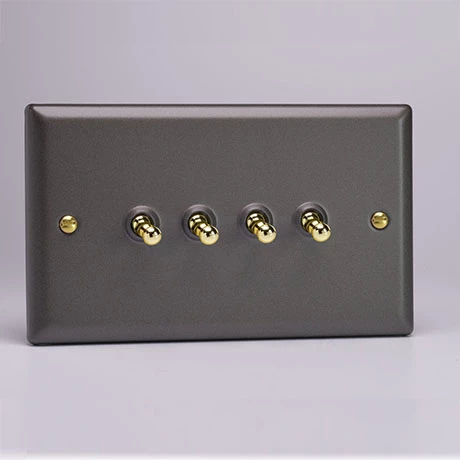 Revive 4 Gang 2 Way Toggle Switch – Slate Grey/Brass