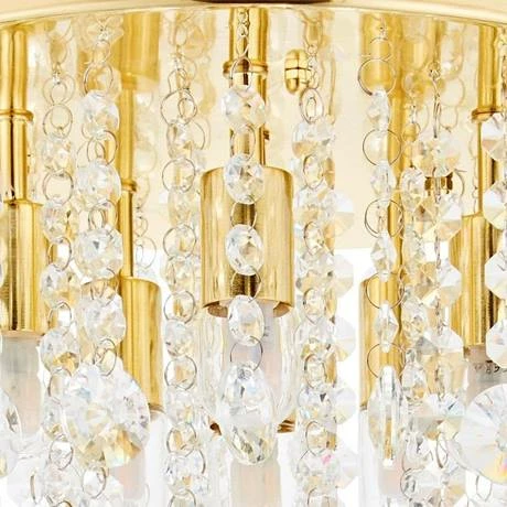 This Revive 6 light flush ceiling fitting features a round design ceiling plate in a brass finish with an array of stylish crystal droplets. This captivating light fitting will add a contemporary edge to any bathroom and is IP44 rated.