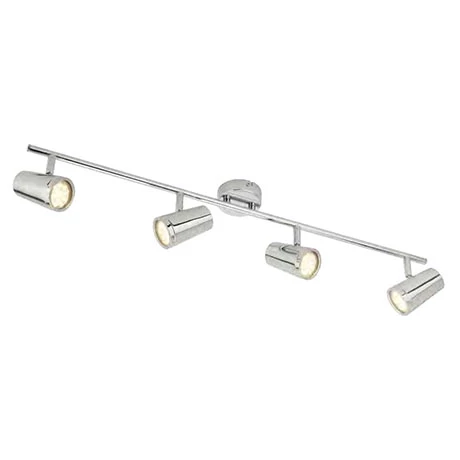 The Revive chrome 4-light bathroom bar spotlight is designed to create bright and practical illumination in the bathroom. Featuring a chrome ceiling bar plate with four adjustable lights, its IP44 rating makes this bathroom light bar splash proof from any angle.
