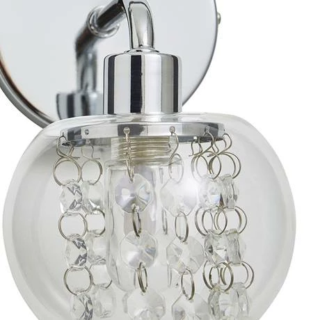 The Revive bathroom wall light is a stylish and contemporary bathroom light. It features a polished chrome wall plate and clear glass shade with decorative crystal glass droplets. The light takes 1 x G9 LED lamp for ease of replacement. Its IP44 rating makes it suitable for use in the bathroom.