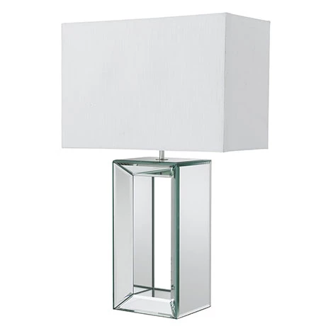 With its stylish faux-silk shade and eye-catching mirrored design, this chrome table lamp is a luxurious option for all stylish modern spaces. A wonderfully unique mirror table lamp with a hollowed centre that will serve to open up your space.