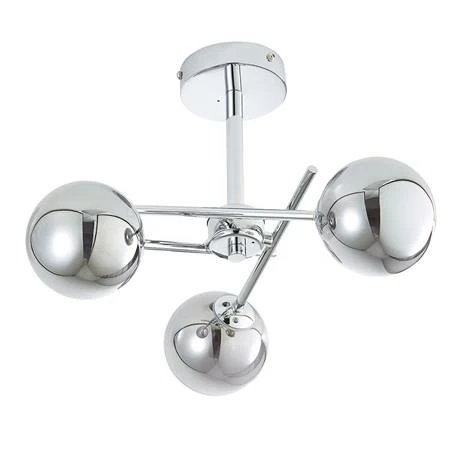 The Revive 3-light bathroom ceiling light is a stylish and contemporary bathroom light. It features a polished chrome ceiling plate with a cross arm design and smoked glass sphere shades. The light takes 3 x G9 LED lamps for ease of replacement. Its IP44 rating makes it suitable for use in the bathroom.