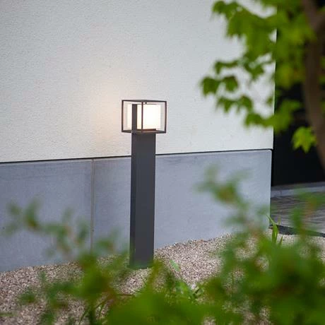 The Revive Outdoor Cube Dark Grey Bollard Light shines in all directions which give your outdoor environment a particularly beautiful appearance. This sophisticated outdoor light has a sleek and modern design and has integrated energy efficient LEDs.
