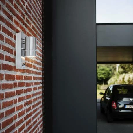 The Revive Outdoor PIR Modern Stainless Steel Wall Down Light is a modern classic light giving a stylish wall washing effect. The PIR motion sensor can detect movement 4-8 metres away and has a 120° detection range. Its GU10 lamp holder accepts a wide range of GU10 lamps and GU10 LED lamps.