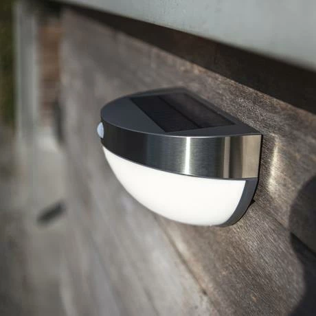 This Revive Outdoor Solar PIR Wall Light is compact, easy to install and weatherproof. It features a polycrystalline solar panel for high efficiency and a PIR motion sensor that can detect movement up to 12 metres away and has a 120° detection range.