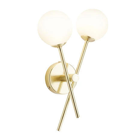 The Revive 2-light bathroom wall light is a stylish and contemporary bathroom light. It features a satin brass ceiling plate with a cross arm design and opal glass sphere shades. The light takes 2 x G9 LED lamps for ease of replacement. Its IP44 rating makes it suitable for use in the bathroom.