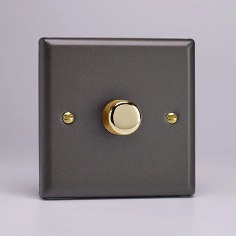 Revive Single Dimmer Light Switch – Slate Grey/Brass – RV1DSB