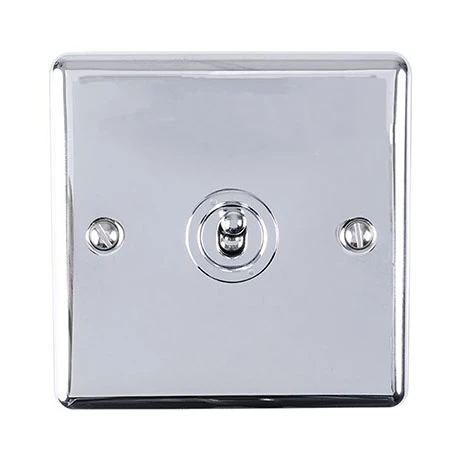 The Revive Single Toggle Light Switch features rounded edges for a contemporary look. Made from high quality materials, this accessory is styled in a modern design and has a Polished Chrome finish.