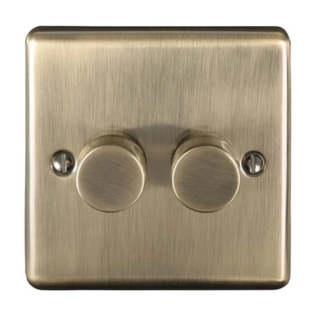 The Revive Twin Dimmer Light Switch is stylish and practical. Made from high quality materials, this accessory is styled in a modern design and has a Antique Brass finish.