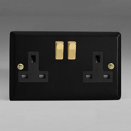 Revive Lighting Revive 1 Gang Switched Socket - Matt Black/Brass