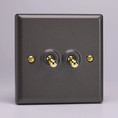 Revive Twin Toggle Light Switch – Slate Grey/Brass